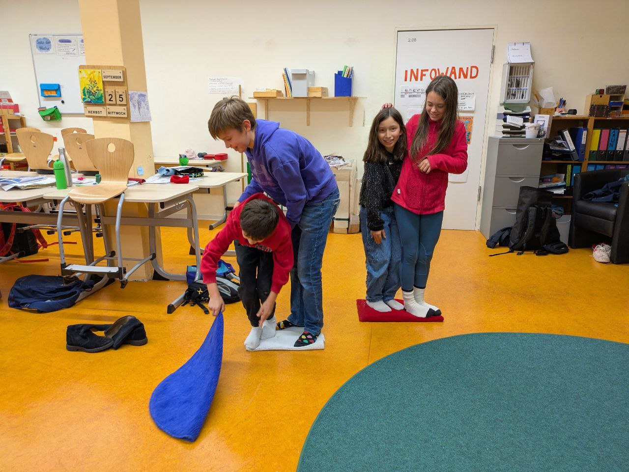 Jeder Projektnachmittag startete mit einer gemeinsamen Redaktionssitzung. Dabei wurde besprochen, welche Artikel fertiggestellt werden würden und wer sich um welche Aufgaben kümmerte. Für die Recherche nutzten die jungen Redakteur:innen Laptops und Tablets, stöberten in Büchern oder starteten Befragungen im Schulhaus. Zwischendurch sorgten kleine Bewegungsspiele dafür, dass überschüssige Energie abgebaut wurde – und dass anschließend wieder mit frischem Kopf und neuer Motivation weitergearbeitet werden konnte.