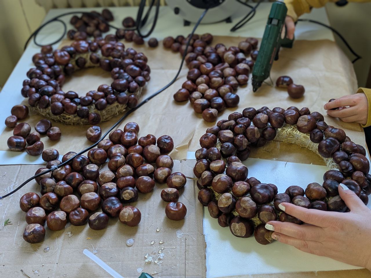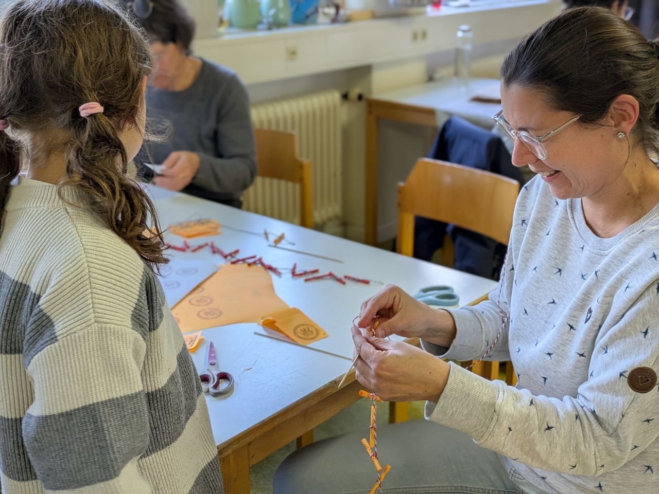 Neben den praktischen Arbeiten im Schulgebäude fanden zwei kreative Bastelnachmittage statt, bei denen Eltern und Kinder gemeinsam viele liebevoll gestaltete Schätze für den Kreativstand herstellten. Mit leuchtenden Augen und voller Begeisterung entstanden Vogelfutterhäuschen für den Winter, funkelnde Glitzermagnete, kleine Adventskalender und handgefilzte Schneemänner und Vögel. Aus Walnüssen und Kastanien wurden einzigartige Türkränze gefertigt und aus Holz, Stoff oder Naturmaterialien entstanden Mini-Bilderrahmen, Mäppchen, Insektenhotels und viele weitere kleine Kunstwerke. Jeder Basteltisch war erfüllt von konzentriertem Werkeln, fröhlichem Plaudern und dem Stolz darüber, etwas Schönes mit den eigenen Händen zu schaffen.