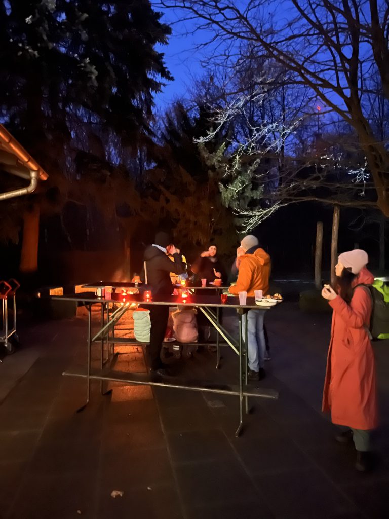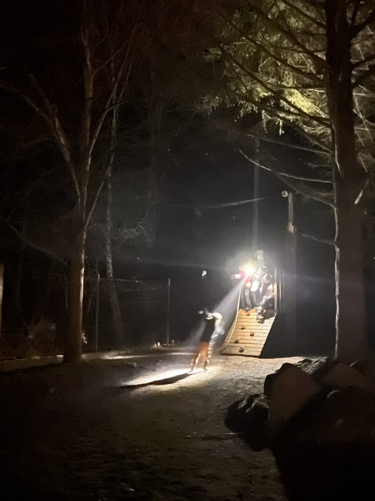 Während die Erwachsenen die Zeit für Austausch und Gespräche nutzten, erkundeten die Kinder und Jugendlichen die Gegend und den Spielplatz mit ihren Taschenlampen, spielten Dunkelfangen oder testeten, wie sich Seilbahnfahren im Dunklen anfühlt. Dem fröhlichen Lachen nach zu urteilen, was immer wieder aus dem Dunkeln zu hören war, schien es auf jeden Fall Spaß gemacht zu haben.