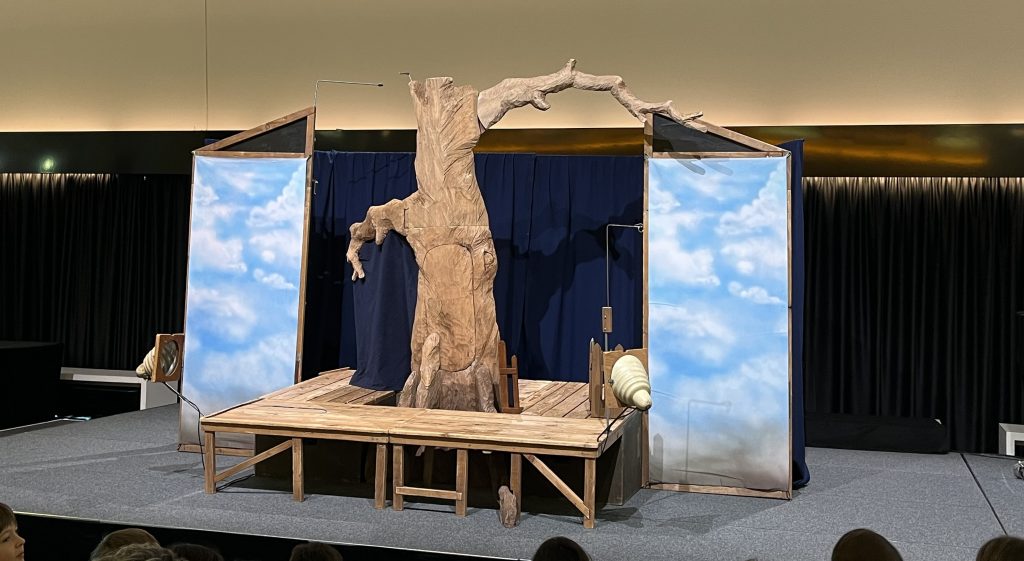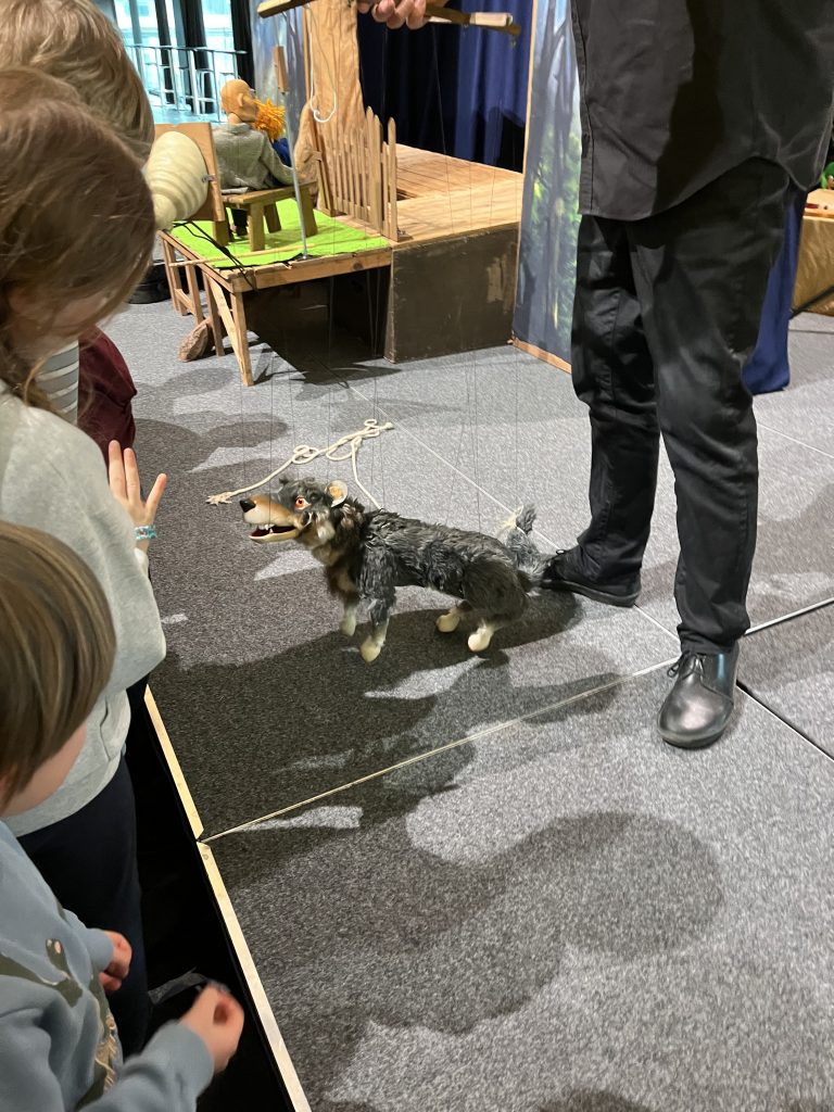 In der vergangenen Woche besuchten die Schüler:innen der 4.-6. Klassen das musikalische Marionettentheater im Staatstheater in Darmstadt und durften dort die Geschichte von Peter und dem Wolf erleben. Musikalisch begleitet wurde das Theaterstück mit den fantasievollen und detailreichen Marionetten von einem kleinen Ensemble des Staatstheaters.
