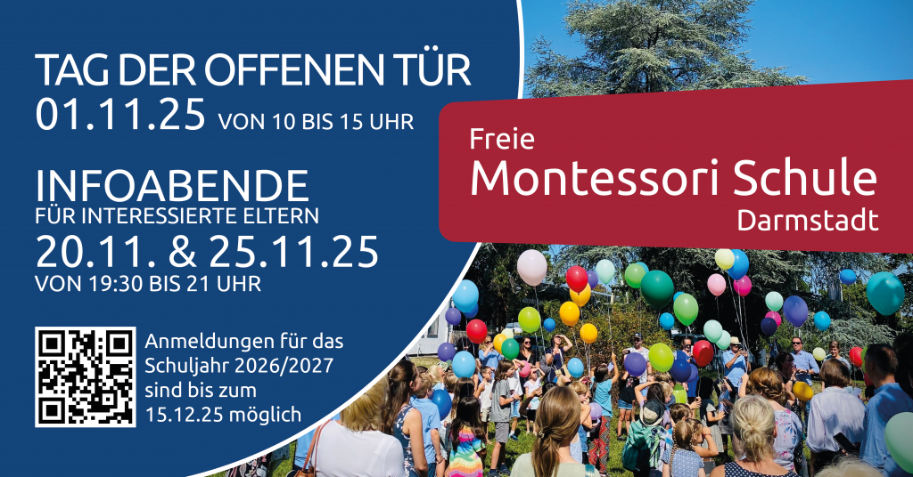 Außerdem finden am 20.11 und 25.11.2025 Infoabende für interessierte Eltern statt. Mehr dazu: https://montessori-darmstadt.de/veranstaltungen/